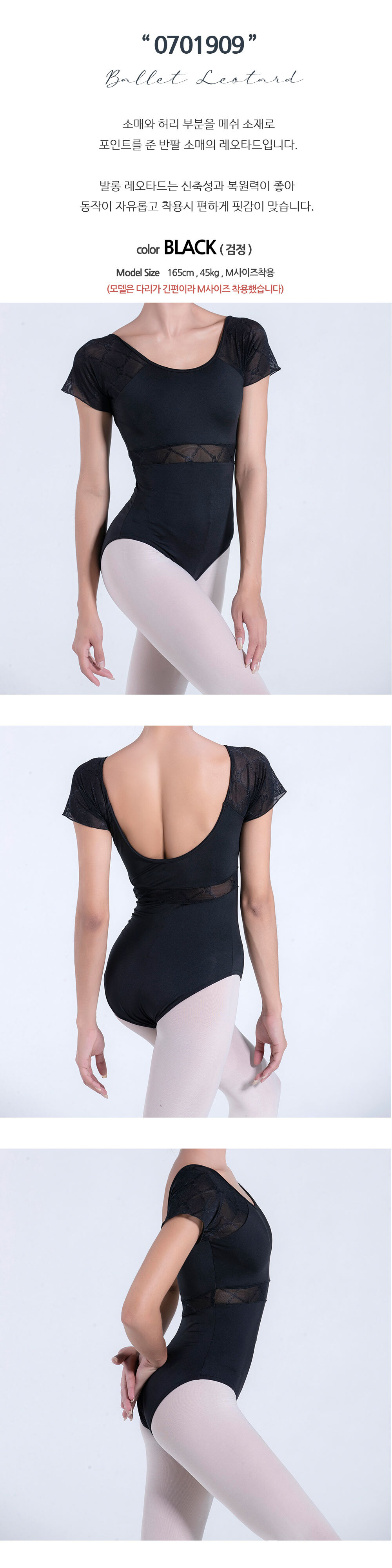 발롱 0701909 검정 반팔 성인 레오타드 발레복 4