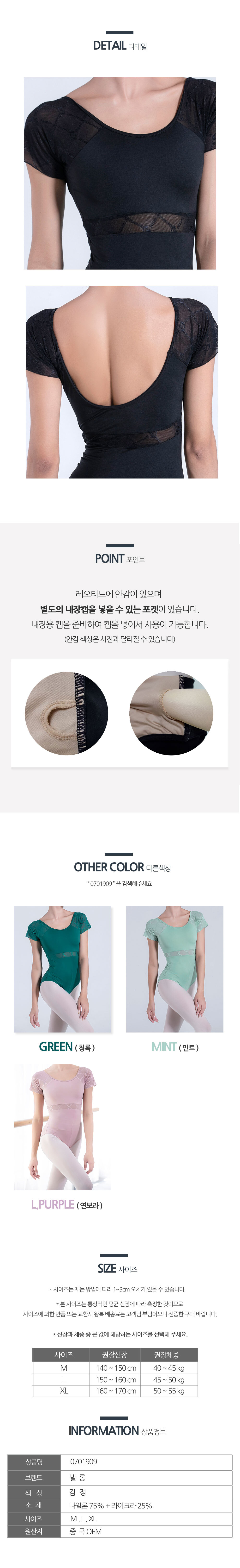 발롱 0701909 검정 반팔 성인 레오타드 발레복 6