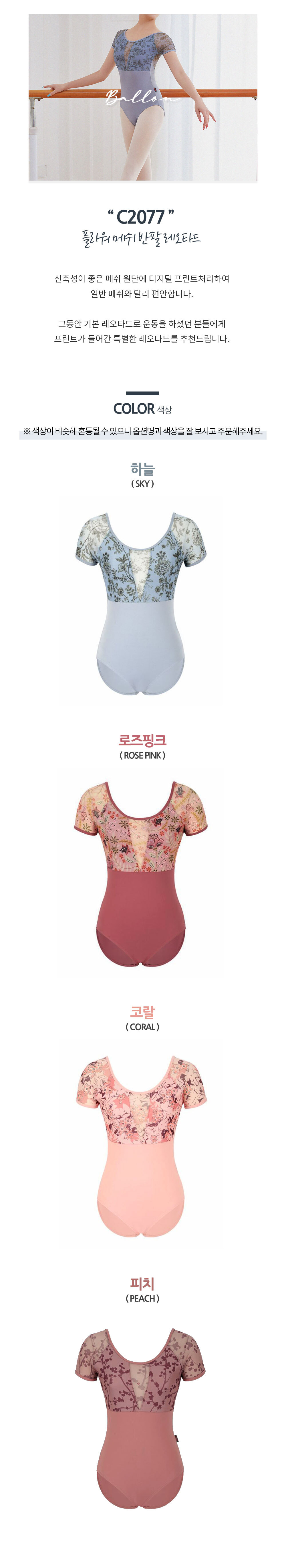 발롱 C2077 성인 발레복 플라워 메쉬 반팔 레오타드 5
