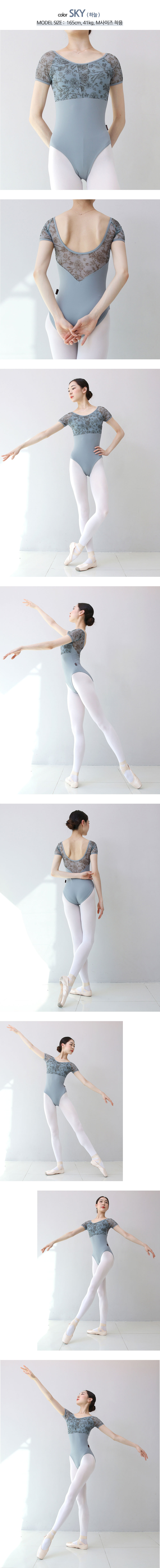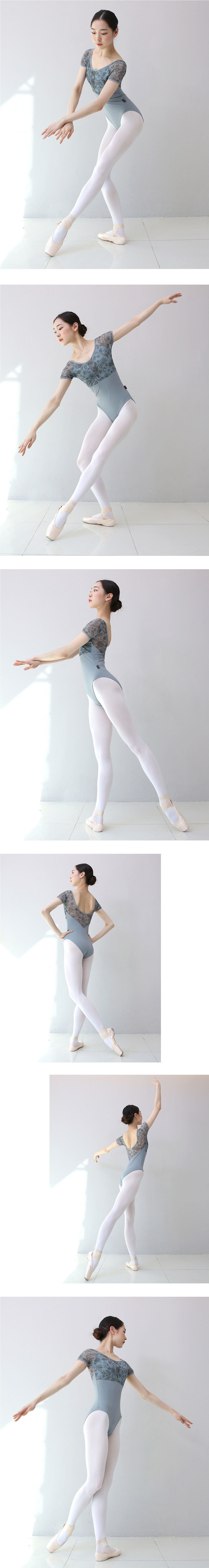 발롱 C2077 성인 발레복 플라워 메쉬 반팔 레오타드 6