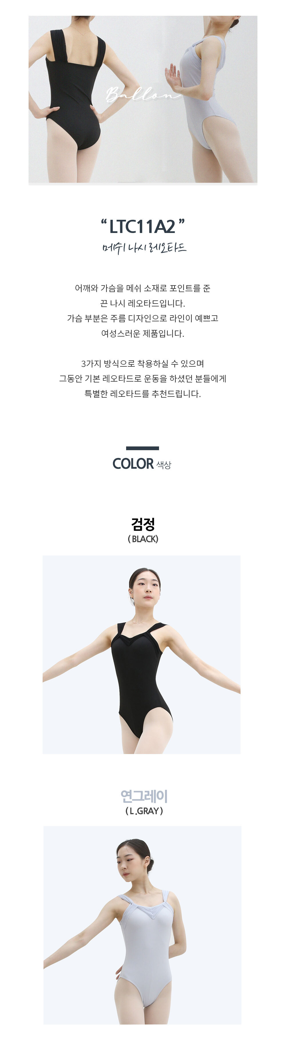 발롱 LTC11A2 성인 발레복 메쉬 끈나시 레오타드 3