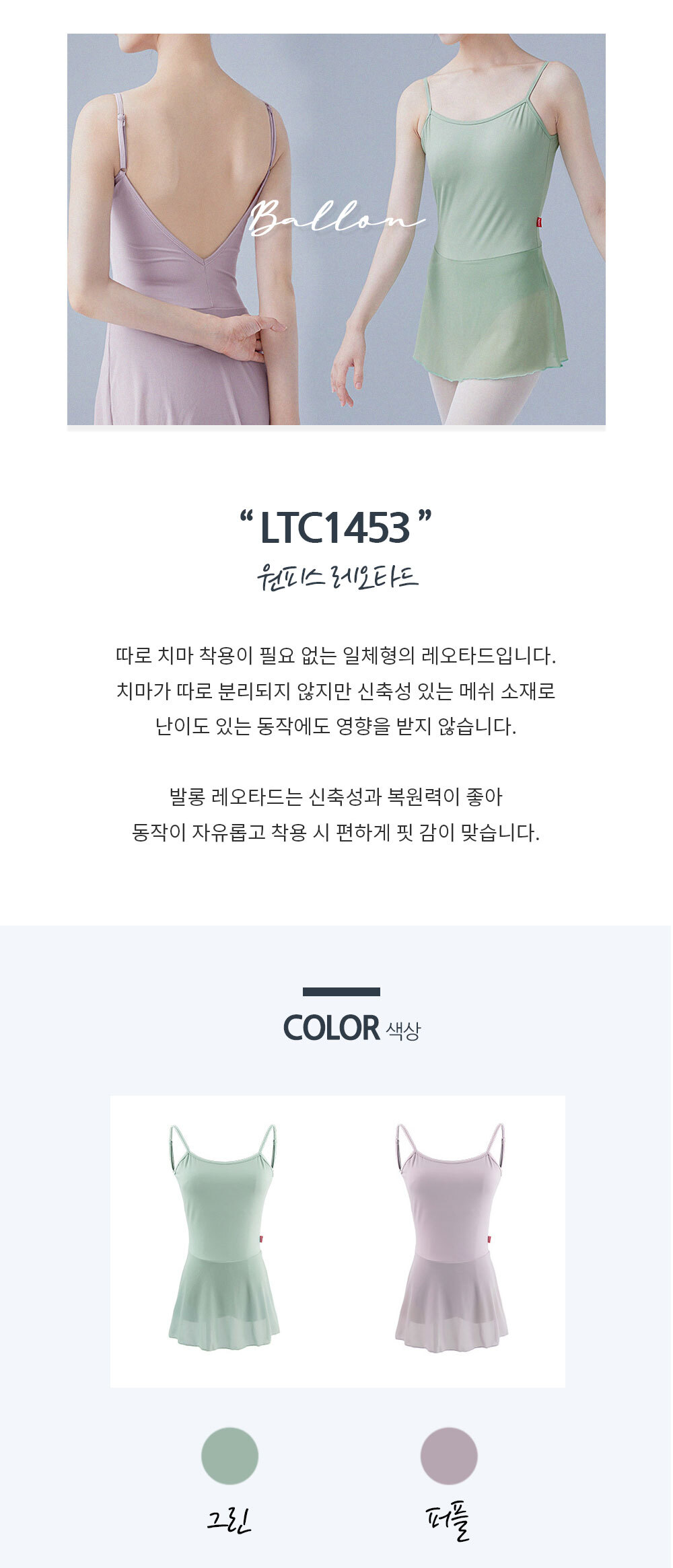 발롱 LTC1453 성인 발레복 원피스 나시 레오타드 6