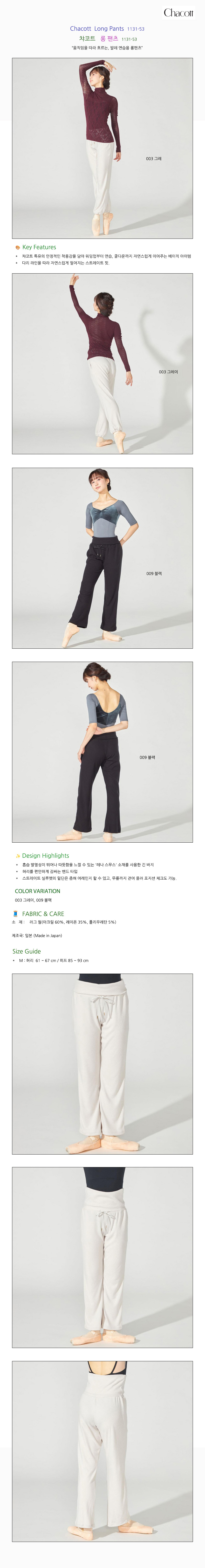 Chacott Long Pants 1131-53 ・스트로프 팬츠 ・발목까지 오는 길이로 발레 및 워밍업 시에 활용하기 좋습니다. Key Features ・부드러운 소재감과 편안한 착용감이 돋보이는 여성용 팬츠. 부드러우면서 보온성을 겸비하고 있어 데일리 팬츠로도 좋고, 레슨 웨어로도 사용 가능. Design Highlights ・밑단 실루엣이 살짝 퍼지는 디자인으로 발목 라인까지 자연스럽게 감싸줌 ・신축성 있는 허리밴드 디테일 ・스트랩을 사용한 웨이스트 조절이 가능하고, 복부까지 안정감 있게 감싸는 세미하이 구조 COLOR VARIATION 005, 004, 022 총 3컬러 FABRIC & CARE ・폴리 에스테르 60%, 레이온 35%, 폴리우레탄 5% Size Guide ・M 사이즈: 61~67 / 87~93 cm