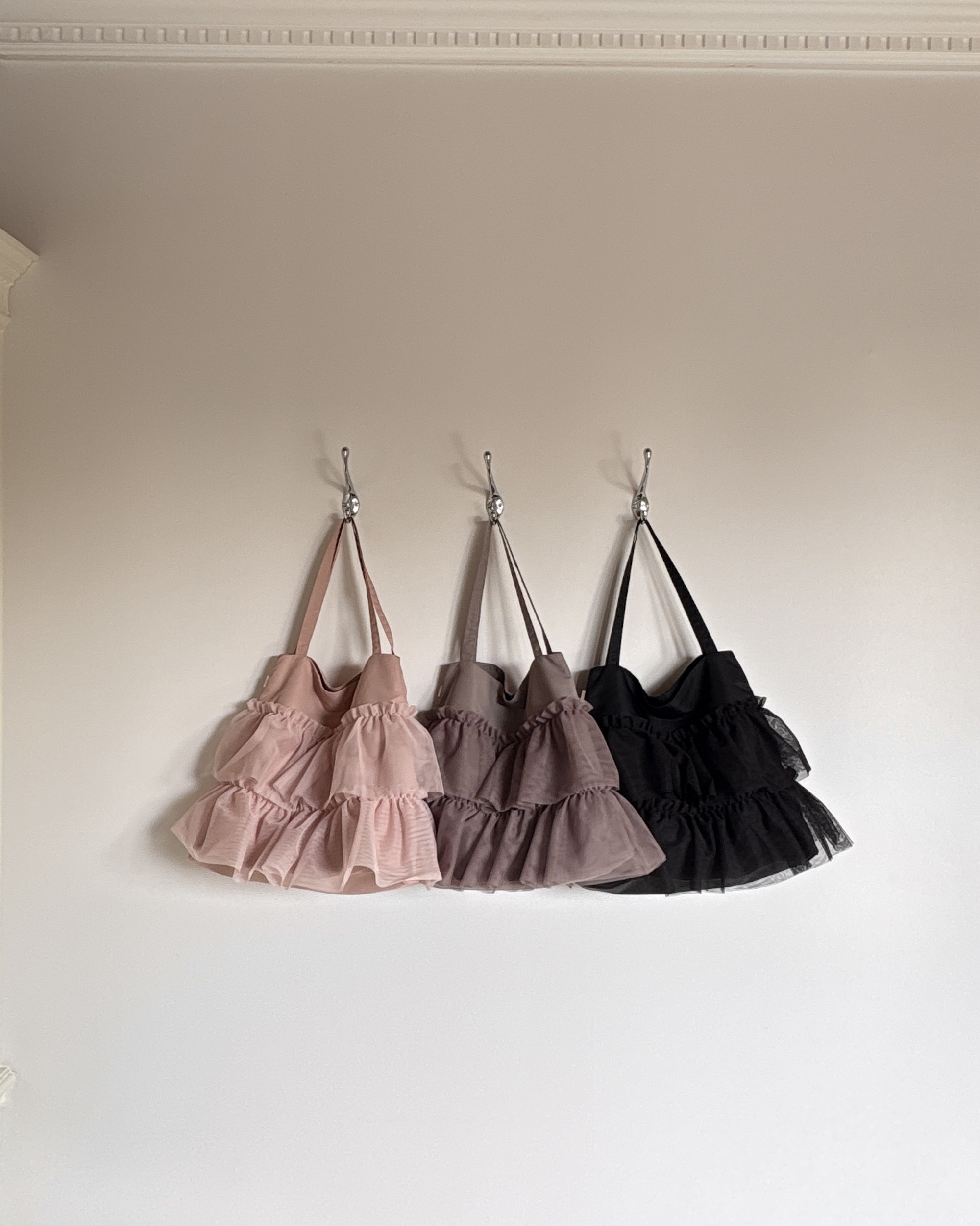 26 리뉴얼 에디션 Tutu 백이 더욱 세련되고 정돈된 형태로 새롭게 리뉴얼되었습니다. 보강된 구조로 형태 유지력이 좋아졌으며, 안정감 있는 실루엣이 사랑스러운 분위기에 깔끔한 균형을 더해줍니다. 새롭게 추가된 내부 포켓으로 작은 소지품을 더욱 쉽게 정리할 수 있어, 실용성도 한층 높였습니다. Dégagé, Tutu 발레백 이 발레백은 튀튀 스커트에서 영감을 받아 제작되었습니다. 튀튀처럼 가볍고 넉넉한 원단 사용으로, 프릴 디테일이 더욱 사랑스럽게 느껴집니다. 포인트 슈즈부터 워밍업 웨어까지 발레에 필요한 모든 소지품을 편안하게 담을 수 있도록 제작되었습니다. 원통형 바렐백에 워밍업 오버롤을 겨우 넣고 닫아야 했던 것과 달리, Tutu 백은 발레 용품을 넉넉하게 담을 수 있습니다. 깊고 넉넉한 지퍼 포켓이 있어, 슈즈 파우치 없이도 포인트 슈즈와 다른 슈즈를 보관할 수 있습니다. 실용성을 높이기 위해 추가 포켓도 더해졌습니다. 락커나 바닥에 두어도 형태가 잘 유지되며, 자석 여밈으로 열고 닫기도 편리합니다. Tutu 백은 전용 더스트백에 담겨 제공됩니다. *사이즈 - 가방 크기: 34cm x 36cm - 숄더 스트랩 길이: 54cm - 지퍼 포켓: 23cm x 15cm - 내부 포켓: 18cm x 15cm - 소재와 측정 방법에 따라 1~3cm 정도 차이가 있을 수 있습니다. *소재 - 겉감: Nylon 100% / 겉 프릴: Polyester 100% - 안감: Polyester 100% *세탁 방법 - 찬물 또는 미지근한 물에 단독 손세탁해 주세요. *