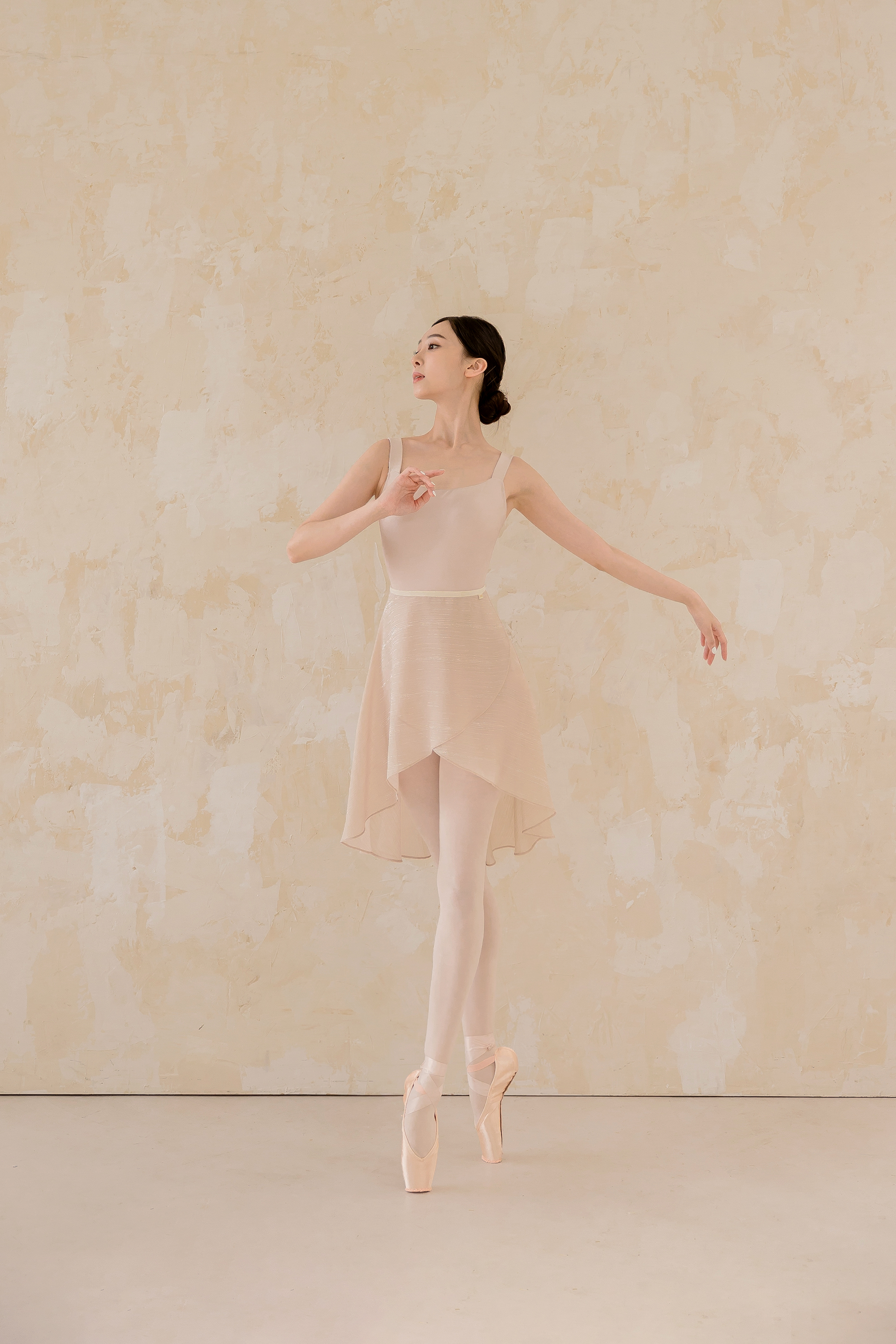 Dégagé, Dégagé classic Midi _ Coffee Dégagé Classic 라인의 새로운 컬러로, 우아하고 세련된 커피 톤이 돋보입니다. 중간 톤과 중간 채도의 색감으로, 어떤 색상의 레오타드와도 아름답게 어우러져 활용도가 높습니다. Dégagé Classic은 기본 아이템에 Dégagé의 감성을 더한 라인입니다. 발레 스커트에 일반적으로 사용되는 표준 쉬폰보다 2~3배 높은 가격의 프리미엄 쉬폰 원단을 사용했습니다. 무광의 가볍고 산뜻한 소재에 은은한 실버 실이 포인트로 더해졌으며, 다른 제품보다 더 풍성한 플레어를 주어 클래식하고 우아한 실루엣을 완성했습니다. 리본에는 신축성 있는 밴드를 사용해 안정적으로 고정되며 착용감이 편안합니다. *사이즈 허리 55–80 cm 총장: 앞 34 cm, 뒤 62 cm 소재와 측정 방법에 따라 1–3 cm 정도 차이가 있을 수 있습니다. *소재 Polyester 100% *세탁 방법 찬물 또는 미지근한 물에 단독 손세탁해 주세요. *