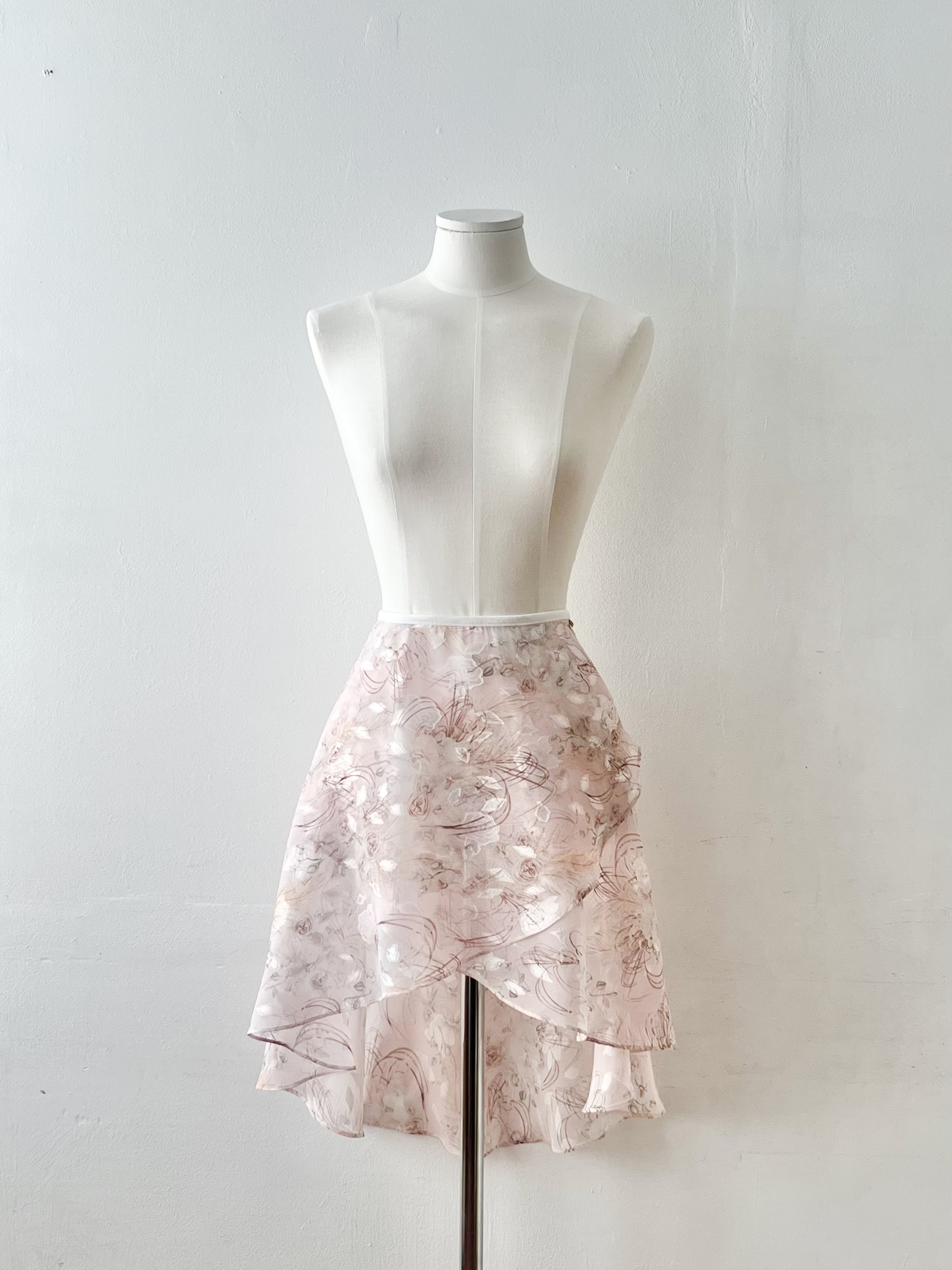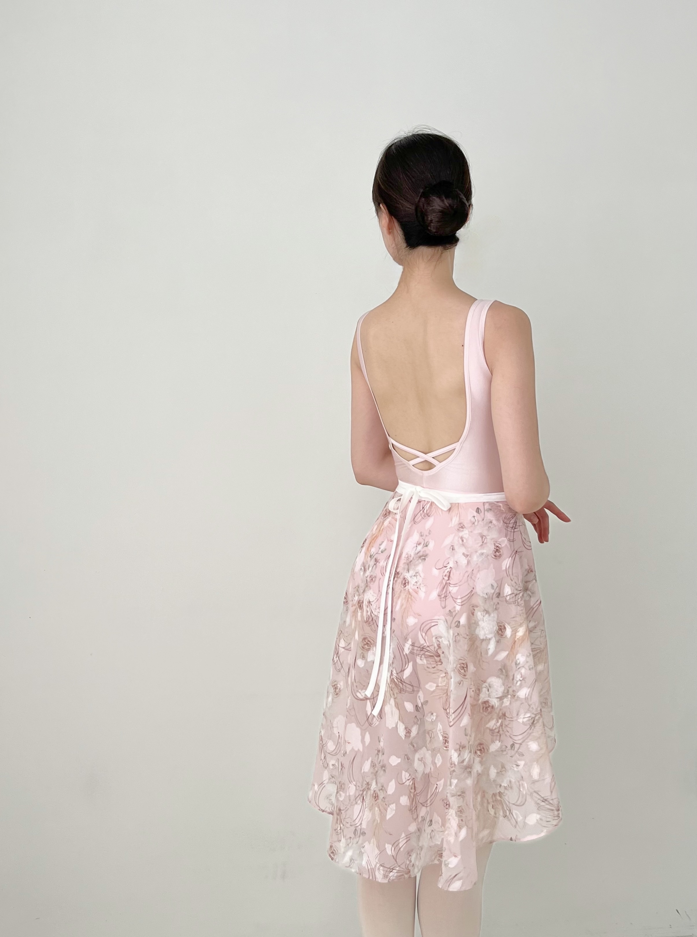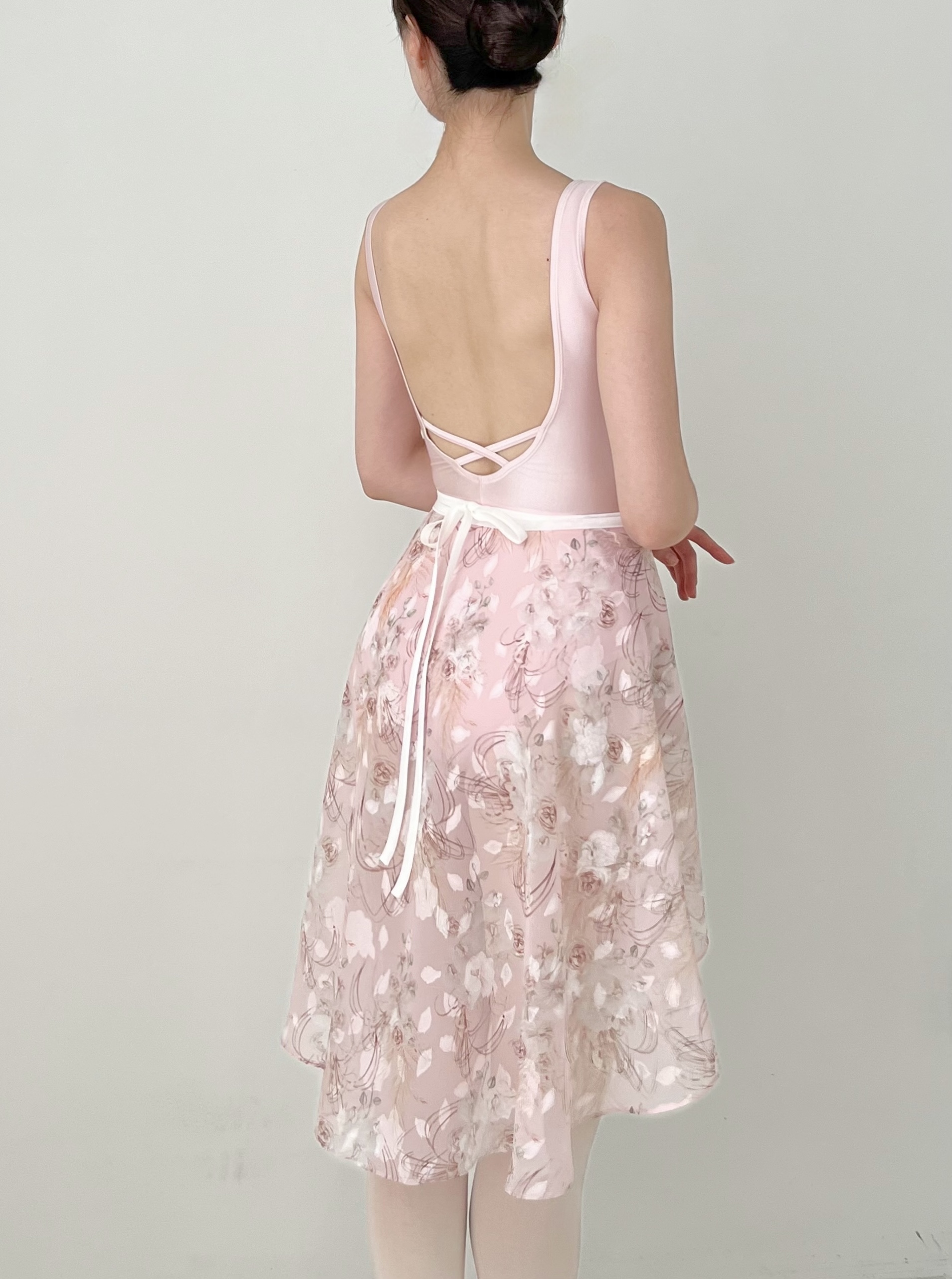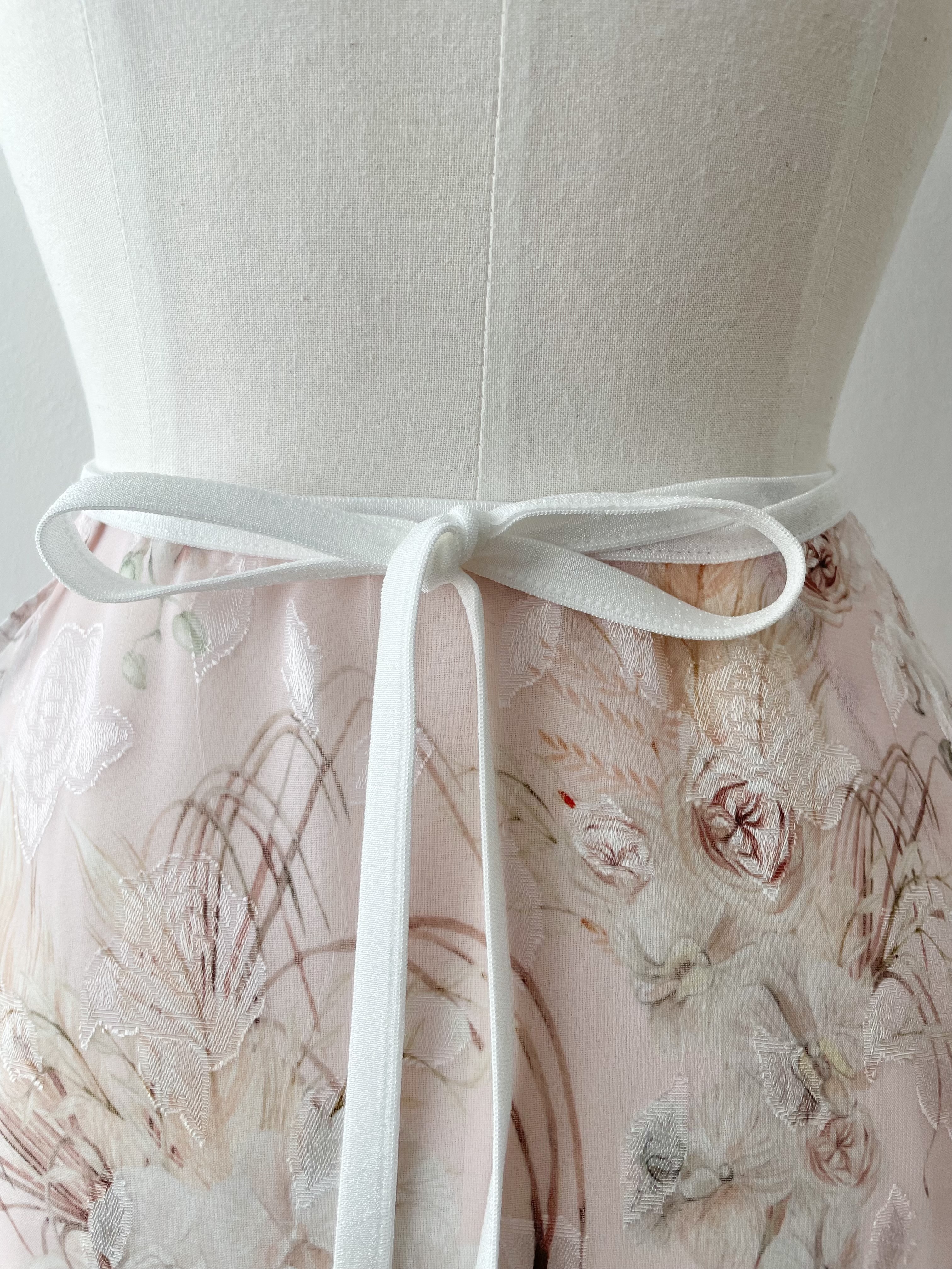 Dégagé, 미스티 가든 미디 스커트 _ Pale pink 색감과 질감이 돋보이는 플로럴 패턴의 짧은 스커트입니다. 안개 낀 정원에 피어난 장미와 비 오는 날의 분위기를 떠올리게 합니다. 물을 머금은 듯한 투명하고 부드러운 색감이 은은한 광택을 더해줍니다. 연한 핑크 톤은 발레 타이츠 위에 레이어드했을 때 더욱 밝아 보입니다. 원단 구간에 따라 질감과 비침이 달라져 독특하면서도 화려한 느낌을 줍니다. 리본에는 신축성 있는 밴드를 사용해 흘러내리지 않고 편안하게 착용할 수 있습니다. *사이즈 허리 55~80cm 총장: 앞 34cm, 뒤 62cm 소재와 측정 방법에 따라 1~3cm 정도 차이가 있을 수 있습니다. *소재 폴리에스터 100% *세탁 방법 찬물 또는 미지근한 물에 단독 손세탁해 주세요.