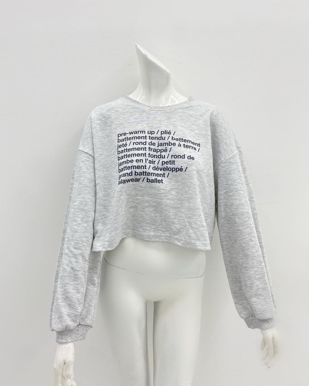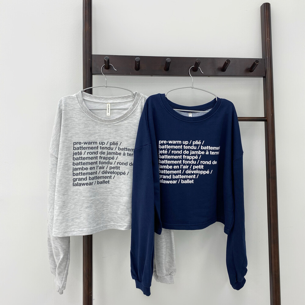 DETAILS STYLE 맨투맨 COMPOSITION 코튼 SIZE (cm) 총기장 46 팔길이 59 암홀 24 DESCRIPTION 테리 원단으로 제작 된 크롭 기장의 맨투맨 입니다. 기모보다 가벼운 원단으로 운동 시 부담스럽지 않습니다. 웜업용 및 일상복으로 착용하실 수 있습니다. 전면에 라라웨어 시그니처 디자인 발레바 순서가 들어가 있습니다. CARE INSTRUCTIONS 단독 세탁이나 비슷한 컬러의 옷과 세탁을 권장합니다. 세탁망에 넣어 세탁기 사용 중성세제 사용/그늘 건조 라라웨어의 상품 패턴 및 디자인에 대한 모든 권리는 라라웨어에 있습니다. 무단 패턴 도용시 민형사상의 법적인 책임이 발생할 수 있습니다 . 마감 없는 러프에지에서 깔끔하게 마감된 밑단처리로 디자인이 변경 되었습니다. 맨투맨 핏은 동일합니다. NAVY LIGHT HEATHER GREY -