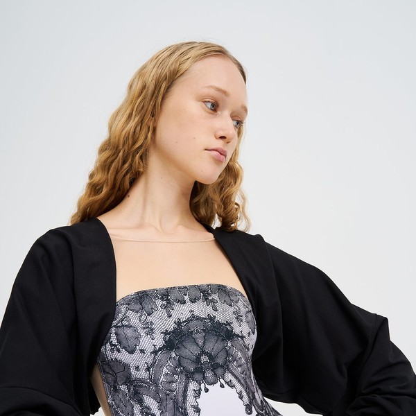 [Maldire] Bolero복잡한 자수는 보통 의상에서 볼 수 있지만, 일상복에서는 흔히 볼 수 없습니다. 볼륨을 더하고 선을 정의하기 위해 트롬프루이(실물처럼보이는) 인쇄를 결합하면, 눈보라와 같은 레일리프 자수는 배울 수 있는 교훈이 됩니다. 결국, 단순함은 복잡할 수 있습니다.블 볼레로는 어떤 룩에도 모던한 우아함을 더해줍니다.가볍고 통기성이 좋은 면소재로 제작되었으며,과하지 않으면서도 적당한 양의 드라마틱함을 더해주는 볼륨감 있는 소매가 특징입니다.허리 부분이 크롭되어 레오타드나 바디수트 위에 걸쳐 입기에 완벽한 레이어로,움직임에 제약 없이 따뜻함과 스타일을 더해줍니다.발레 워밍업이나 수업 후 착용하기에 이상적인 볼레로는 스타일리시한 것만큼 다재다능합니다.스튜디오로 가거나 캐주얼한 저녁을 보낼 때,모든 의상을 돋보이게 하는 세련되고 간편한 레이어를 제공합니다.유지 관리를 위해 메쉬의 찢김을 방지하고 수명을 연장하기 위해세탁망에 넣어 세탁하는 것이 좋습니다.구성: 100% 면모델은 178cm입니다0