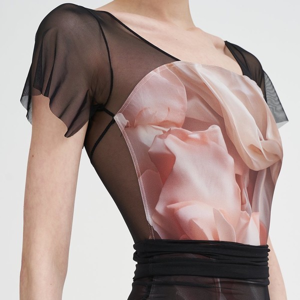 [Maldire] Butterfly Sleeve - ELEONORAEleonora Duse(엘레오노라 두세), 이탈리아의 유명한 배우로서 19세기 말과 20세기 초에 활약했습니다. 그녀는 깊은 감정과 자연스러운 연기 스타일로 유명했습니다. 섬세하고 내성적인 접근으로 연기를 혁신하며, 그녀는 그 시대의 멜로드라마적인 표준에서 독립적으로 섰습니다. Duse는 그녀의 고향인 Asolo의 묘지에서 묘비가 있는 언덕 위에 묻혀 있으며, 이 묘비는 배 모양으로 독특하게 조성되어 있습니다. 그녀를 기리는 프린트는 그녀가 우아하게 대표한 옛날 시대의 드레스, 원단 및 소용돌이를 떠올리게 합니다.가볍고 신축성 있는 블랙 튤 소매 레오타드너무 두드러지지 않으면서도 미묘한 움직임을 연장시킵니다.올라간 사각 백 라인은 네크라인의 모서리를 보완합니다.베네치아 오페레타의 갑옷 의상에서 영감을 받은 패턴은전사 실루엣에 블랙 튤의 상냥함을 녹여냈습니다.블랙 메쉬 하의와 어두운 스커트나 팬츠를 매치해 완벽한 룩을 연출해보세요.시그니처 접착 원단은 내구성이 매우 뛰어나고 부드러우며제2의 피부처럼 작용하면서도 놀라운 커버력을 제공합니다.유지 관리를 위해 메쉬의 찢김을 방지하고 수명을 연장하기 위해세탁망에 넣어 세탁하는 것을 추천드립니다.구성: 46% 폴리아미드, 38% 폴리에스테르, 16% 엘라스테인.0