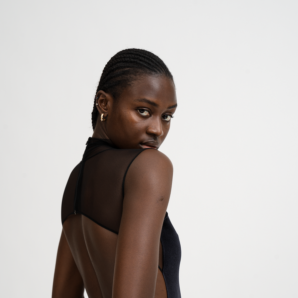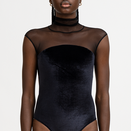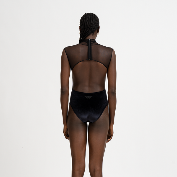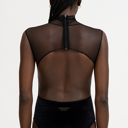 [Maldire] High Neck - BLACK VELVET가볍고 신축성 있는 블랙 튤 하이넥 벨벳 레오타드Signature 4 way stretch velvet내구성이 뛰어나며 매우 부드럽습니다.*블랙 라인의 모든 부분은 1930년대 곤충학 책의 앞 표지에 있는 시그니처 레이저 컷 [검은색 나방] 정품 마크가 있습니다.이 마크가 없는 제품은 신뢰하지 마십시오.어두운 스커트나 팬츠를 매치해 완벽한 룩을 연출해보세요.유지 관리를 위해 메쉬의 찢김을 방지하고 수명을 연장하기 위해세탁망에 넣어 세탁하는 것을 추천드립니다.구성: 85% PA, 15% EA2
