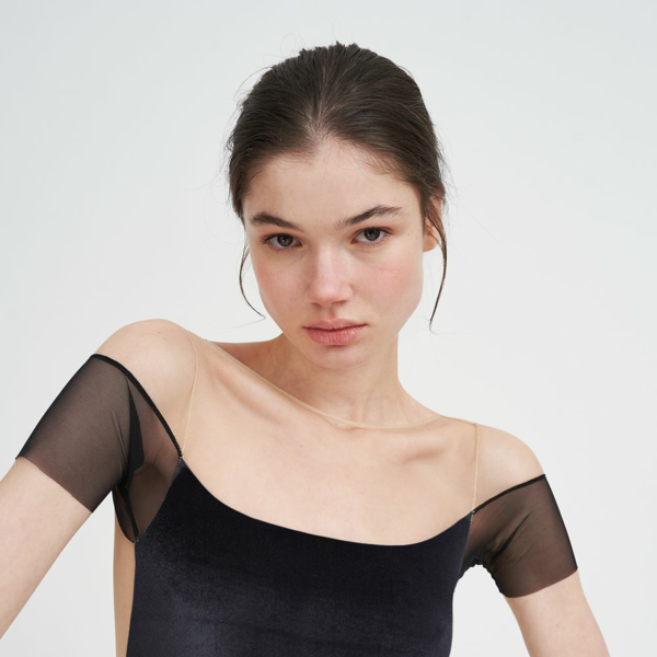 [Maldire] Off The Shoulder - BLACK VELVET복잡한 자수는 보통 의상에서 볼 수 있지만, 일상복에서는 흔히 볼 수 없습니다. 볼륨을 더하고 선을 정의하기 위해 트롬프루이(실물처럼보이는) 인쇄를 결합하면, 눈보라와 같은 레일리프 자수는 배울 수 있는 교훈이 됩니다. 결국, 단순함은 복잡할 수 있습니다.19세기 후반 오프숄더 드레스를 떠올리며 제작되었습니다.일루전 메쉬와 블랙 튤 레오타드의 재해석,블랙 슬리브는 팔의 움직임을 강조하여로맨틱하고 퇴폐적인 미학을 향상시킵니다.일루전 메시는 수년 동안 Maldire 레오타드의 시그니처 요소였습니다.표준적인 스포츠웨어 소재는 아니지만 의상과 패션의 경계를 모호하게 만듭니다.그에 걸맞은 주의를 기울여 착용하시기 바랍니다.유지 관리를 위해 메쉬의 찢김을 방지하고 수명을 연장하기 위해세탁망에 넣어 세탁하는 것이 좋습니다.구성: 46% 폴리아미드, 38% 폴리에스테르, 16% 엘라스테인.1