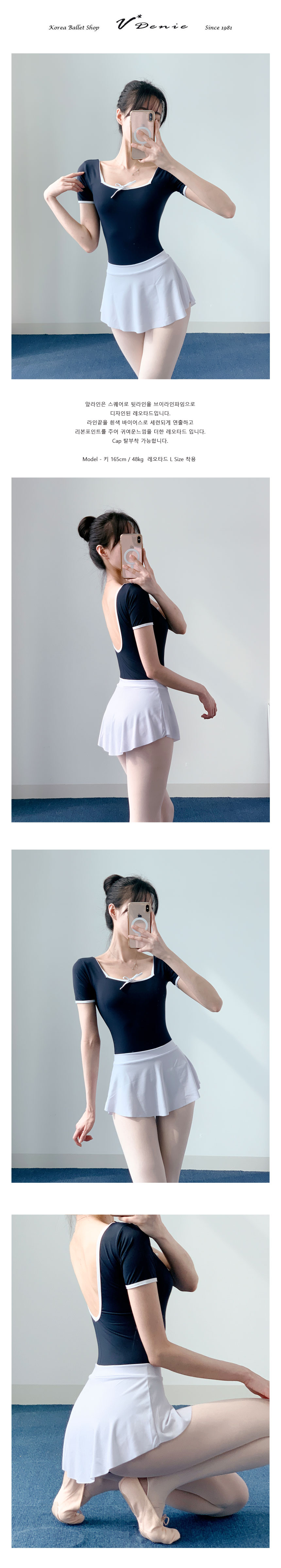 빨라인 스퀘어로 목라인을 브이라인으로 디자인된 레터링 레오타드입니다. 라인을 살려 바디라인을 세련되게 연출하고 리본디테일을 수어 페미닌한 디테일을 만들어 냅니다. Cap. 필수구 가능합니다. Model - 키 165cm / 48kg / 44반 / S size 착용