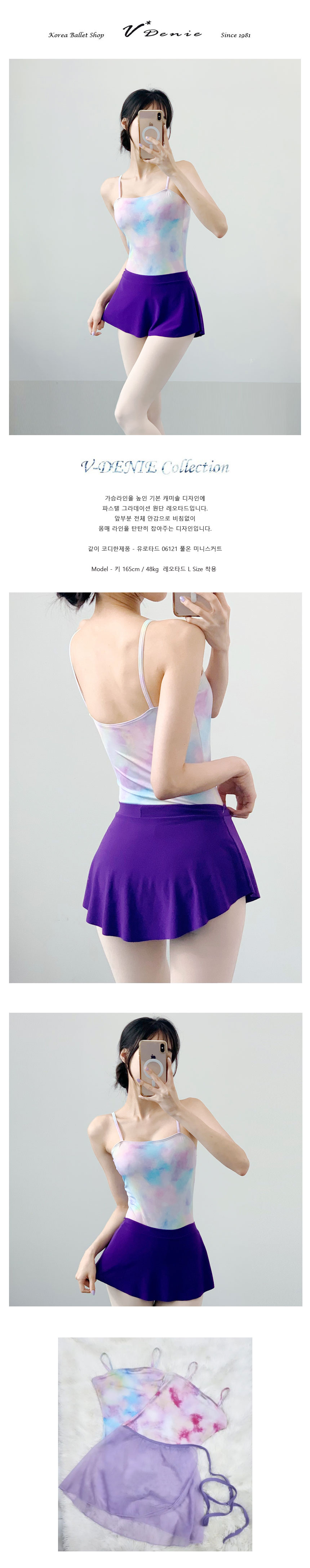 가슴라인을 높이 기존 끼메솔 디자인에 파스텔 그라데이션 패턴 레오타드입니다. 밑부분 진시 안감으로 비침없이 몸에 라인을 탄탄히 잡아주는 디자인입니다. 같이 코디한제품 - 슈슈단 - 06121 쥴르 미니스커트 Model - 키 165cm / 48kg 리오타드 L Size 착용