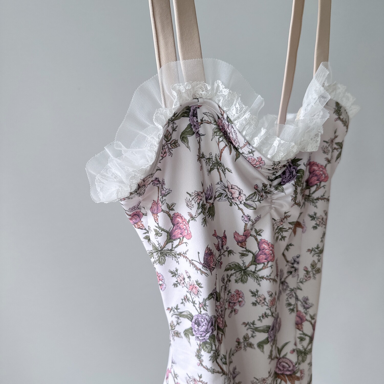 영국 정원의 분위기에서 영감을 받은 우아하고 세련된 플로럴 프린트와 섬세하고 부드러운 더블 레이스가 어우러져, 진정한 예술 작품 같은 감각을 선사하는 레오타드입니다.