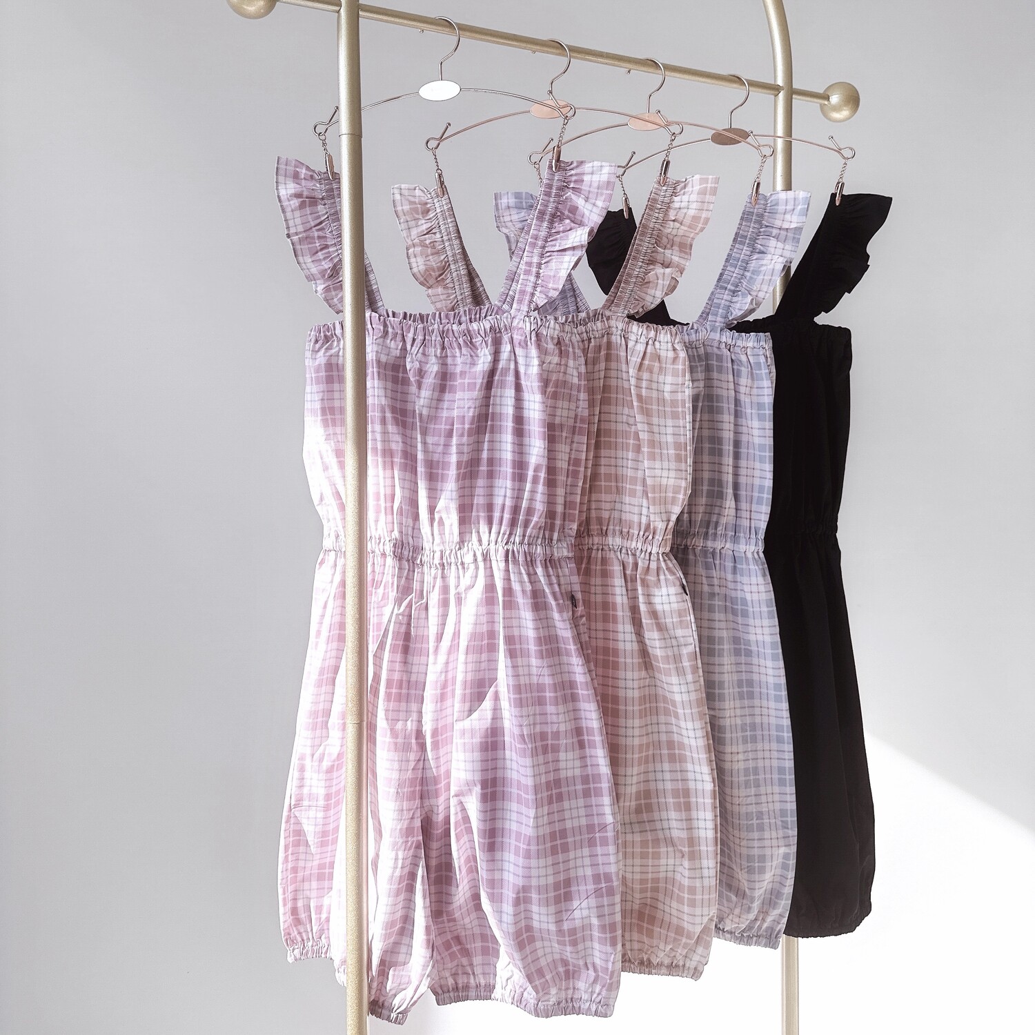 빈티지한 디테일과 프렌치 감성이 돋보이는 사계절용 발레 점프수트입니다.