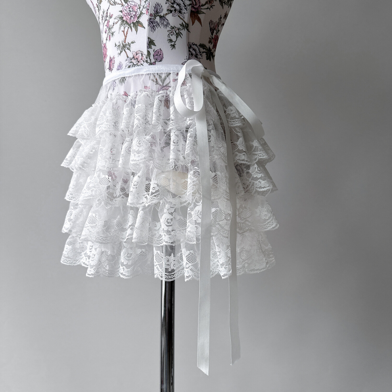 유라 발레 특유의 감성으로 샤넬 빈티지 드레스를 재해석한 프렌치 러셀 레이스 캉캉 스커트입니다.