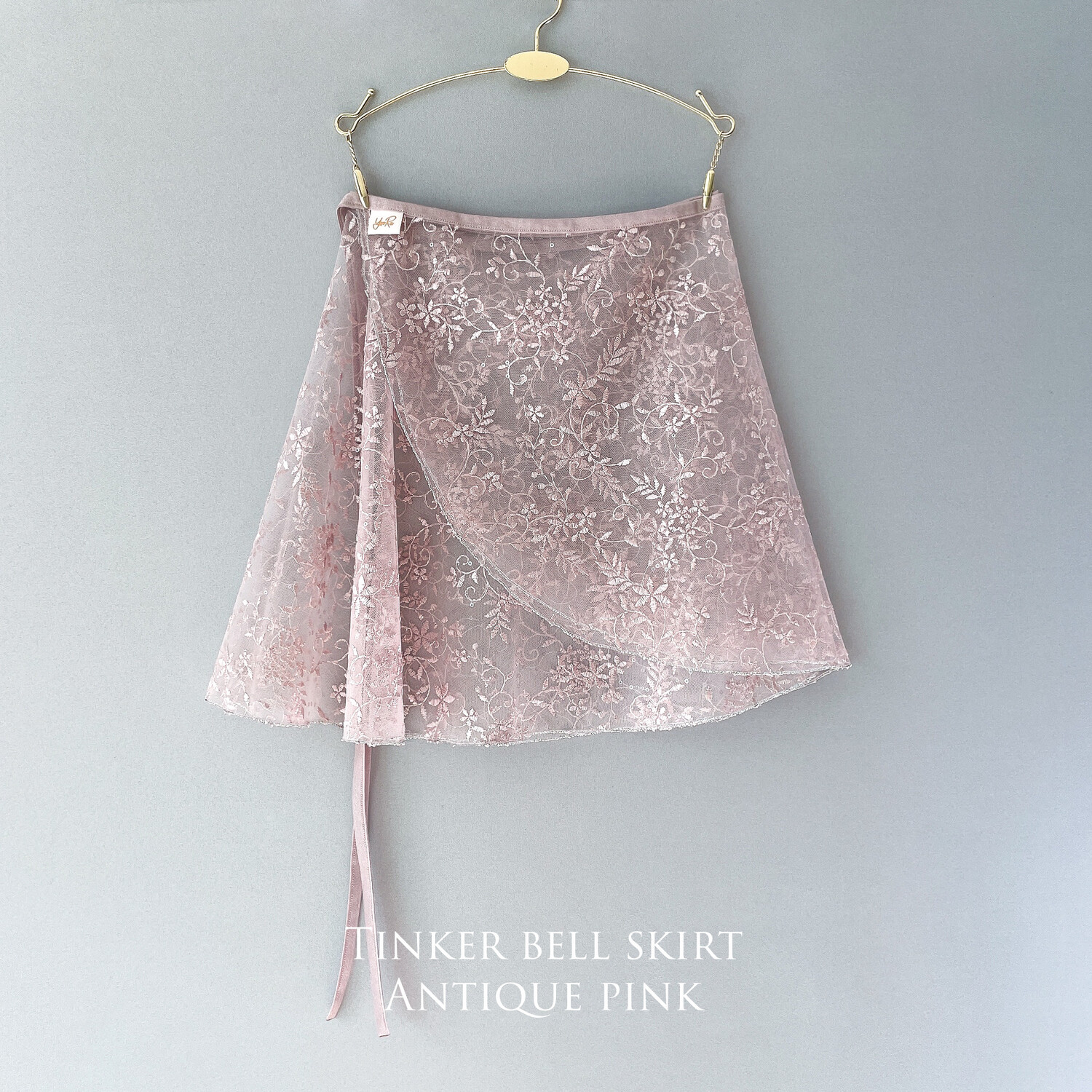 팅커벨의 날개를 떠올리게 하는 고급스러운 자수와 은은하게 반짝이는 투명 스팽글이 돋보이는 스커트입니다.