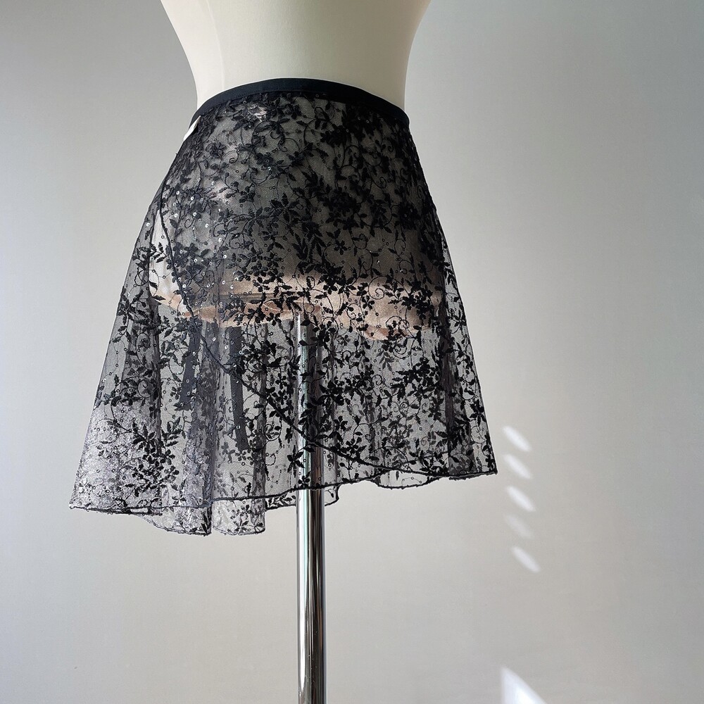 팅커벨의 날개를 떠올리게 하는 고급스러운 자수와 은은하게 반짝이는 투명 스팽글이 돋보이는 스커트입니다.