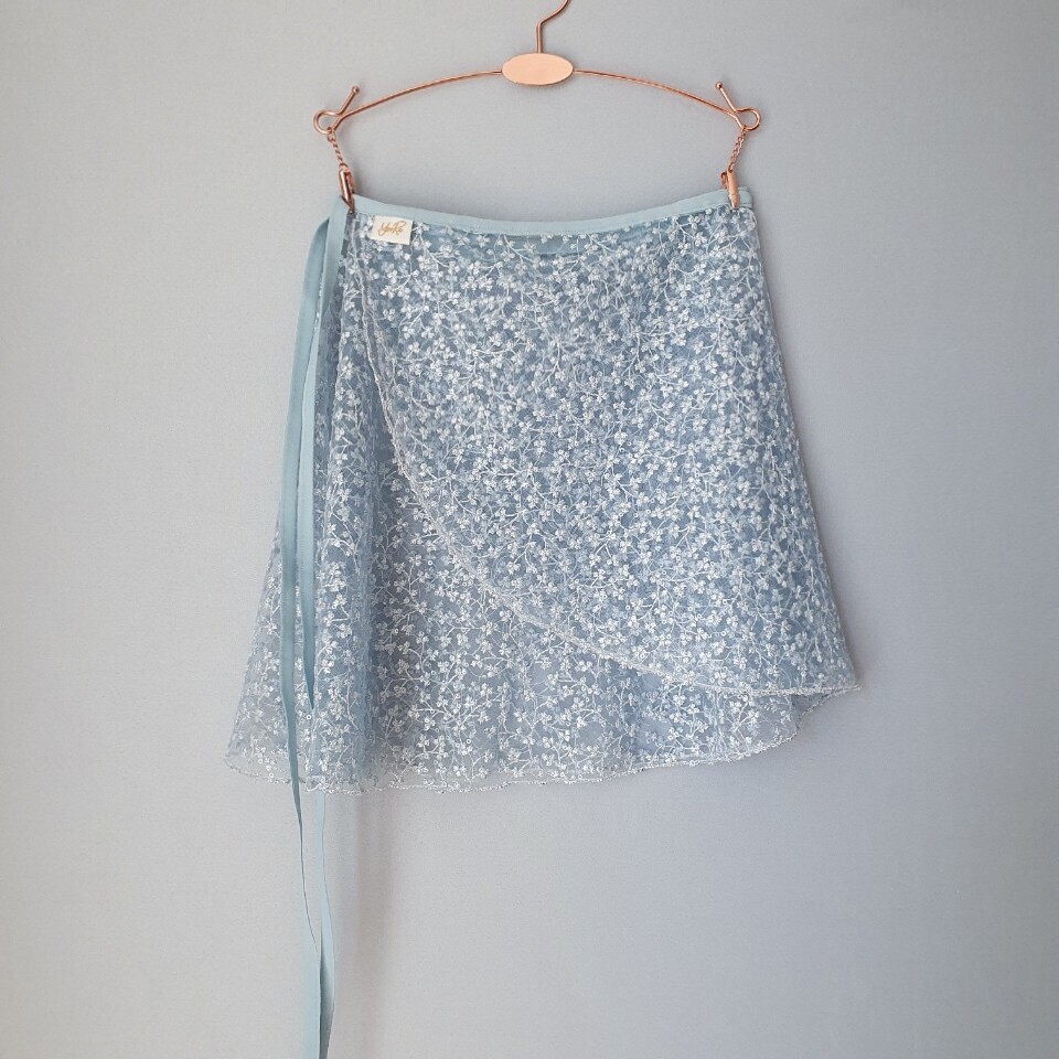 팅커벨의 날개를 떠올리게 하는 섬세한 자수와 반짝이는 반투명 스팽글이 돋보이는 스커트입니다.